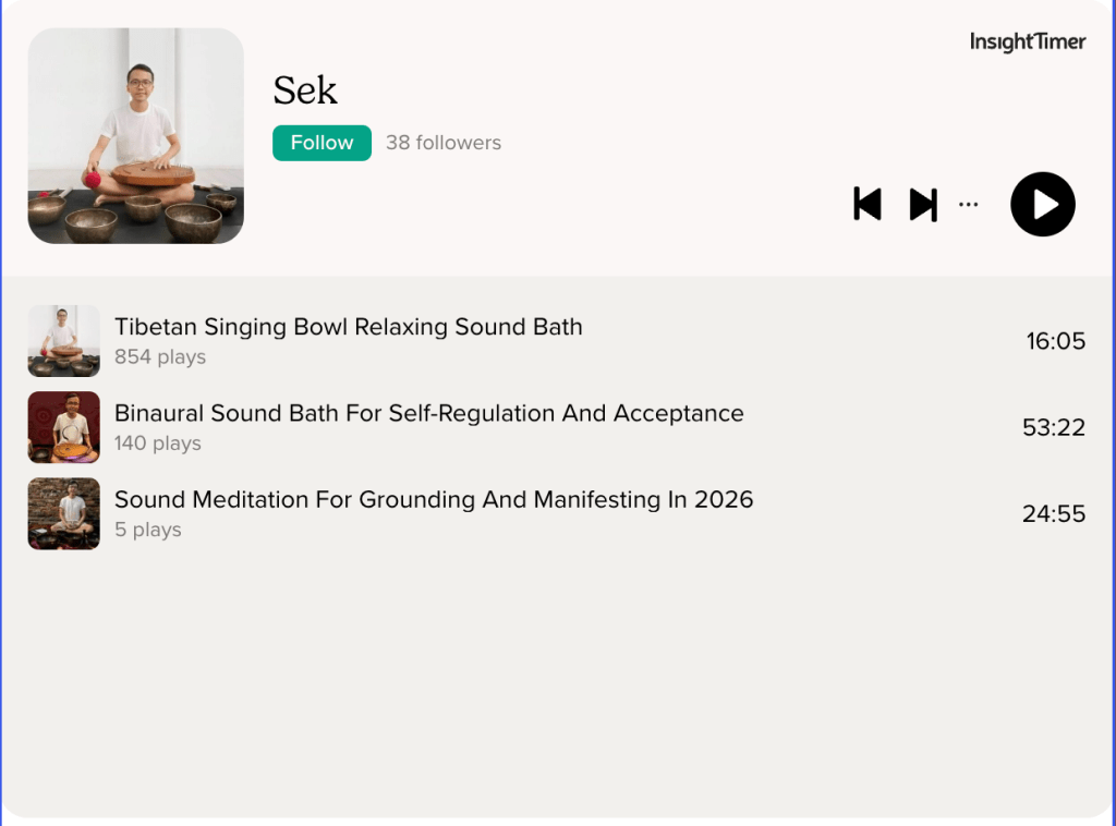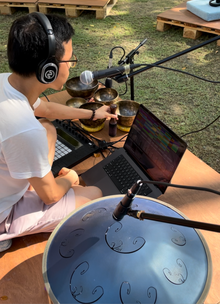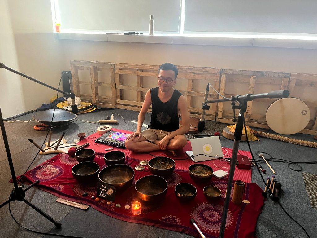 In recent years he has curated sound baths, meditative soundscapes, ecstatic dance and conscious music events at spaces such as Altered States, Felt Sense, Jyan Yoga, Ascend Yoga, Rasa, New Bahru, as well as for corporates such as BMW, Suntec, TPC, Singtel and Starhub.