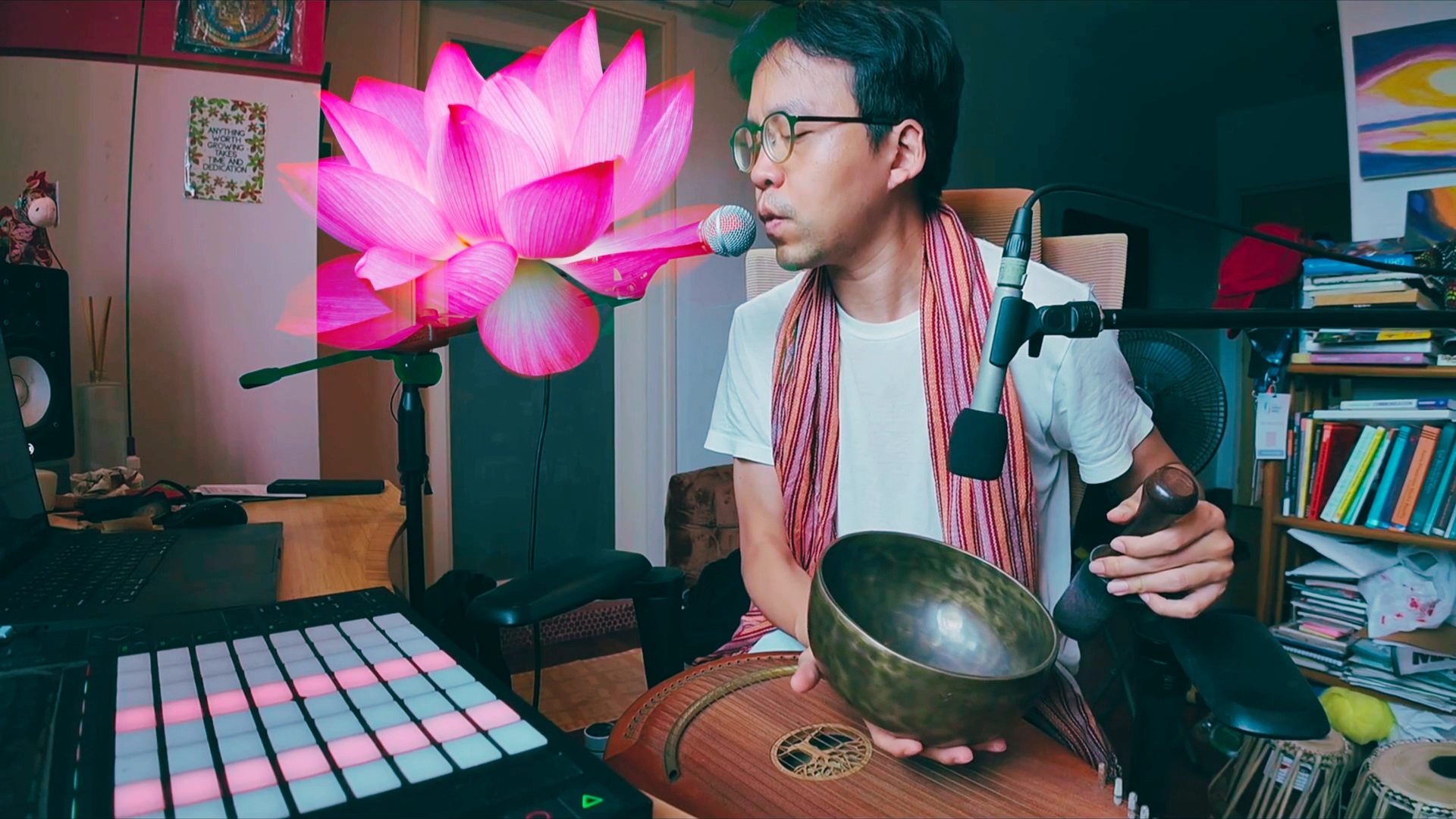 His sound healing journeys interweave live therapeutic instruments (singing bowls, harp, melodic drums etc) with electronic music (hypnotic synths, binaural beats), nature sounds, ethnic music and mantras across cultures. It is a reflection of his journey starting as an underground trance DJ in Melbourne to immersing in yogic journeys in India & Bali, and then realising the power of sound for therapy.